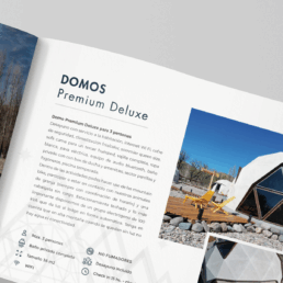 Además del diseño web, desde Estudio Majo desarrollamos un sistema visual integral: brochure institucional, piezas gráficas para comunicación (flyers), señalética y diseño de pinitos personalizados para los domos. Cada elemento fue pensado para unificar la identidad del lodge y brindar una experiencia estética coherente, desde lo digital hasta lo físico.