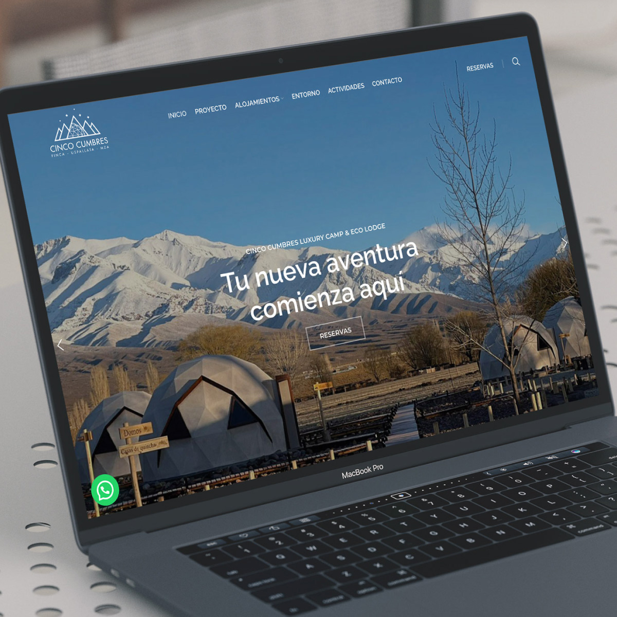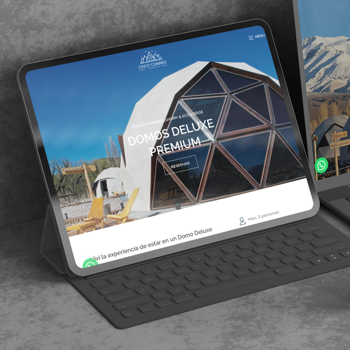 Cinco Cumbres representa un caso destacado de diseño web en Mendoza para turismo de lujo. El sitio refleja su esencia exclusiva y natural con una estética limpia, navegación intuitiva e imágenes impactantes. Fue pensado para convertir visitas en reservas y potenciar la presencia online del lodge.